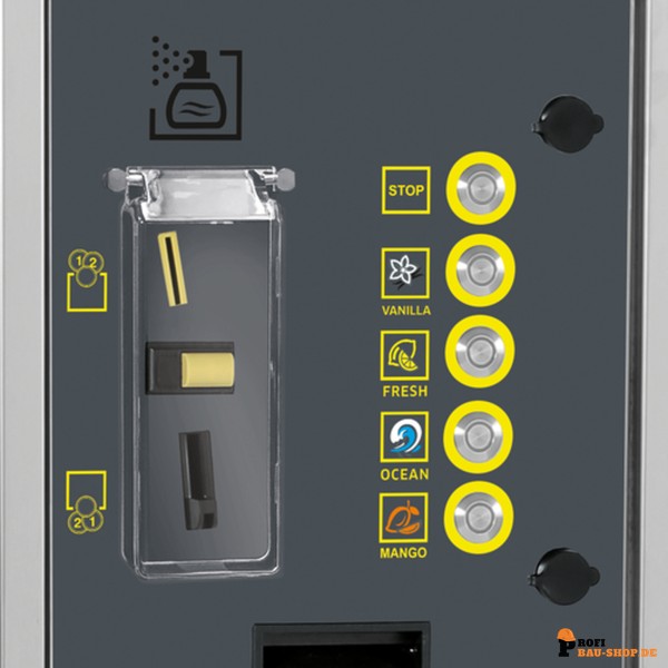 Der Kärcher Perfume Tower PT Fp ist die ideale Lösung, um unangenehme Gerüche im Fahrzeuginneren schnell und effektiv zu neutralisieren. Ob hartnäckiger Rauch, Spuren vom Familienhund oder andere Geruchsbelästigungen – dieser winterfeste Duftsprüher aus der Kärcher Forecourtgerätereihe sorgt für eine angenehme Frische. Ihre Kunden können ganz einfach aus vier verschiedenen reinen Duftessenzen wählen, die individuell anpassbar sind, ohne dass sich die Düfte vermischen. Mit der stufenlos einstellbaren Laufzeit von bis zu 7 Minuten und einem einfach programmierbaren elektronischen Münzprüfer bietet der PT Fp maximalen Komfort und Flexibilität für SB-Waschanlagen und Tankstellen.