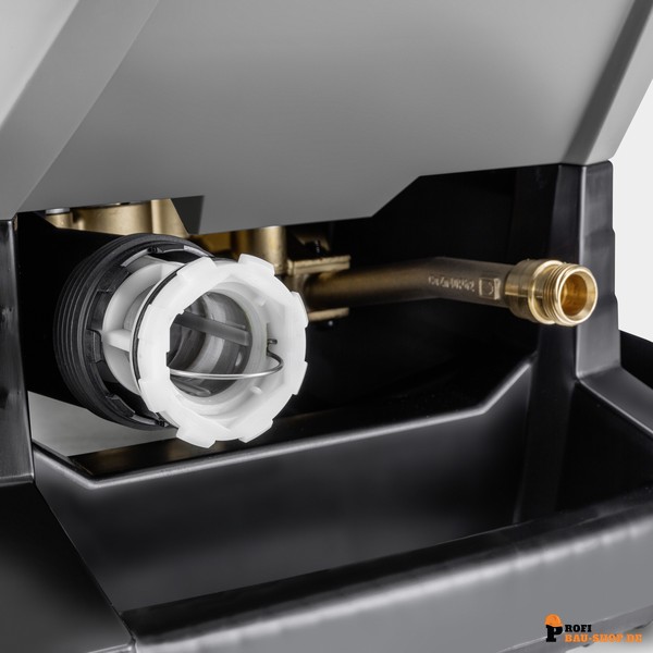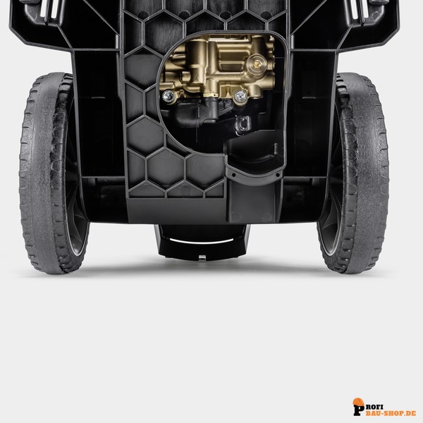 Im Inneren überzeugt der HD 10/25-4 S Plus mit hochwertigen Materialien: Eine robuste Taumelscheibenpumpe mit Edelstahlkolben und Zylinderkopf aus Messing wird von einem langsam laufenden, wasser- und luftgekühlten 4-poligen Motor angetrieben, der für höchste Zuverlässigkeit und Langlebigkeit bürgt. Das leichte und doch robuste Chassis aus Aluminium-Rahmenträgern bildet ein mobiles Design, das sogar die Kranverladung ermöglicht. Das kompakte Upright-Konzept mit vertikal verbauter Motor- und Pumpeneinheit sorgt für optimale Mobilität und Standfestigkeit. Praktische Aufbewahrungsmöglichkeiten wie eine Kängurutasche und verstellbare Haken runden das durchdachte Design ab und machen den HD 10/25-4 S Plus zum idealen Partner für effiziente und ermüdungsarme Reinigung.