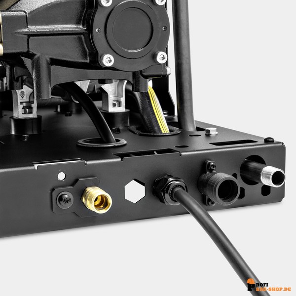Extrem robust und langlebig: Ausgestattet mit einer widerstandsfähigen Kurbelwellenpumpe mit Messing-Zylinderkopf und einem Gehäuse/Rahmen aus pulverbeschichtetem Stahl für maximale Lebensdauer.