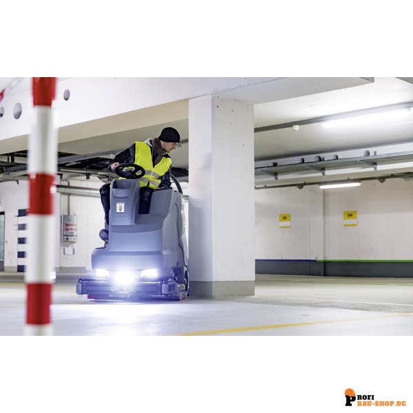 Die Kärcher B 150 R Bp Pack Adv ist eine leistungsstarke Aufsitz-Scheuersaugmaschine mit 85 cm Walzenbürstenkopf und integrierter Vorkehrfunktion. Sie überzeugt mit Allradantrieb, Reinigungsmittel-Dosiersystem DOSE und einer Flächenleistung von bis zu 8.500 m²/h.