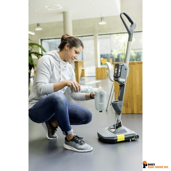 Unsere neue, sehr kompakte Akku-Scheuersaugmaschine BR 30/1 C Bp Pack ist die ideale Wahl zur hygienischen Bodenreinigung auf allen Hartbodenarten, einschließlich Fliesen- und Sicherheitsbodenbelägen. Dabei überzeugt sie dank Mikrofaser-Walzentechnik im Vergleich zur manuellen Bodenreinigung mit einem um bis zu 20 Prozent besseren Reinigungsergebnis sowie bis zu 60 Prozent kürzeren Trocknungszeiten. Angetrieben von einem leistungsstarken 18-Volt-Lithium-Ionen-Akku aus dem Kärcher Battery Universe ist die BR 30/1 C Bp Pack insbesondere zur Unterhaltsreinigung auf kleineren Flächen in Büros, dem Einzelhandel, in Praxen und Kanzleien, in Hotellerie und Gastronomie oder auch in Kantinen, Schulen und Krankenhäusern geeignet. Darüber hinaus ist sie in Verbindung mit dem Kärcher Desinfektionsreiniger RM 732 auch zur Desinfektion von Bodenflächen einsetzbar.