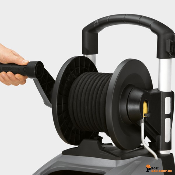 Integrierte Schlauchtrommel: Inklusive 15-Meter-Hochdruckschlauch für bequemes und sicheres Verstauen und ergonomisches Arbeiten.