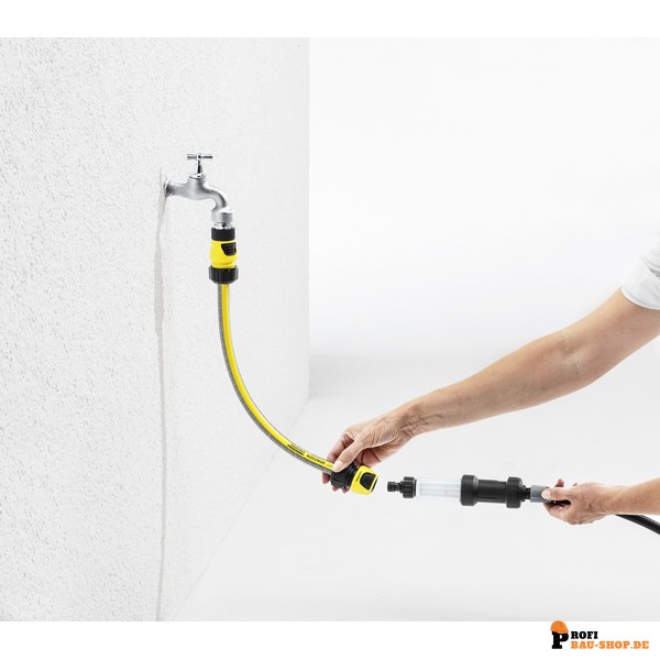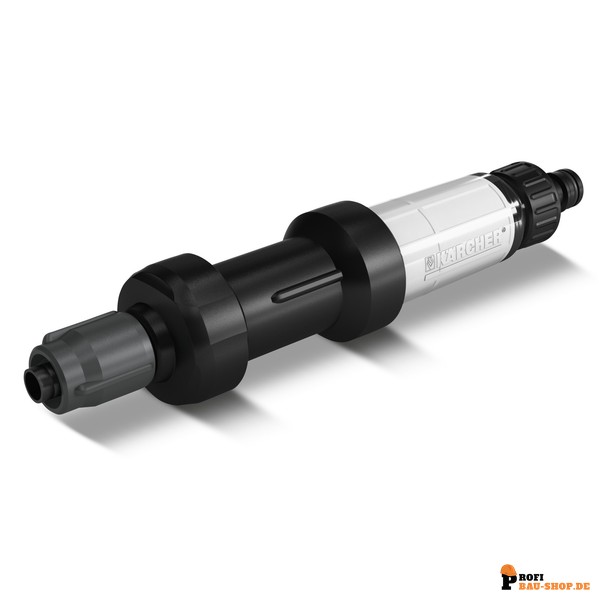Der Kärcher Druckminderer mit Filter ist eine zentrale Komponente des Kärcher Rain Systems®, die für eine effiziente und schützende Bewässerung Ihres Gartens sorgt. Dieses Systemelement reduziert den Eingangsdruck von maximal 12 bar auf optimale 4 bar, was die Lebensdauer und Leistung Ihrer Bewässerungsanlage signifikant verbessert. Gleichzeitig schützt der integrierte Partikelfilter das gesamte Kärcher Rain System® zuverlässig vor Schmutzpartikeln, die aus der Wasserzuleitung stammen können. Der Druckminderer wird einfach zwischen dem Zuleitungsschlauch und dem Kärcher Rain System® angebracht und verfügt über einen Hahnanschluss, der mit allen gängigen Klicksystemen kompatibel ist.