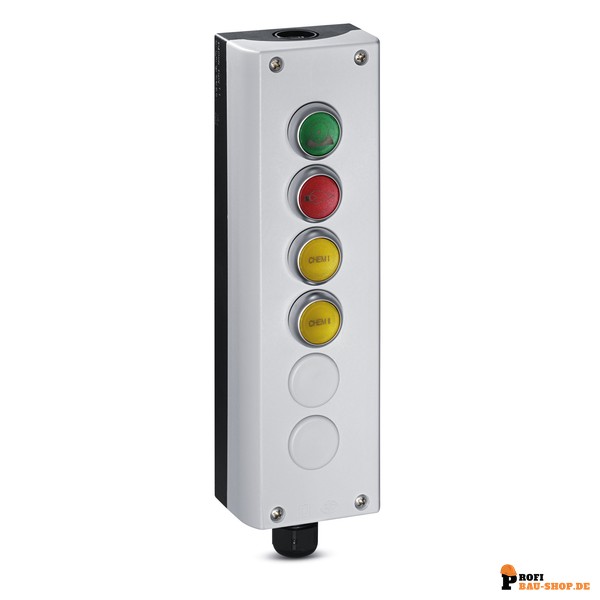 Die Kärcher Mehrfach Fernbedienung I/O, Heiß-Kalt, RM 1/2 (Artikelnummer 2.744-011.0) ist eine unverzichtbare Erweiterung für Ihre stationären Heißwasser-Hochdruckreiniger von Kärcher. Diese vielseitige Tastenfernbedienung ermöglicht Ihnen nicht nur das komfortable Ein- und Ausschalten Ihrer Maschine, sondern auch die präzise Auswahl zwischen Kalt- oder Heißwasserbetrieb. Darüber hinaus können Sie die Dosierung von bis zu zwei verschiedenen Reinigungsmitteln (RM1/RM2) direkt von der Fernbedienung aus steuern. Für die volle Funktionalität ist die Nutzung in Verbindung mit der Kärcher E-Box 2.744-018.0 erforderlich, wodurch eine zentrale und effiziente Steuerung gewährleistet wird. Bis zu sechs solcher Tastenfernbedienungen können an eine einzige stationäre Maschine angeschlossen werden, was maximale Flexibilität in komplexen Arbeitsumgebungen bietet, und optional kann sogar ein Not-Aus integriert werden, um die Sicherheit zu erhöhen.
