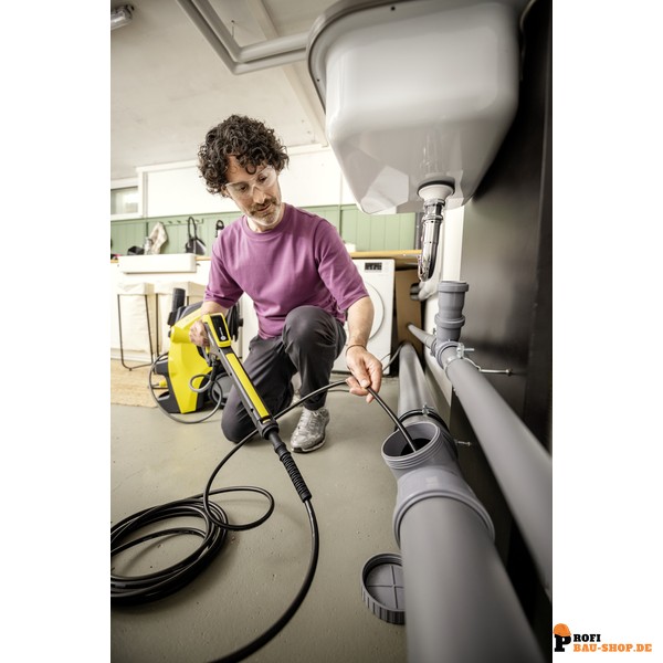 Das Kärcher PC 15 Rohrreinigungsset mit 15 m Schlauch befreit Rohre und Abflüsse effektiv von Verstopfungen. Inklusive praktischem Wechselsystem mit Jet- und Rotationsdüse für vielseitige Anwendungen.