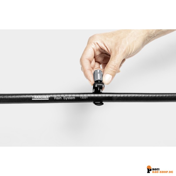 • Integrierte Nadel: Ermöglicht eine schnelle, einfache und komplett werkzeuglose Montage direkt am Kärcher Rain System® Schlauch.