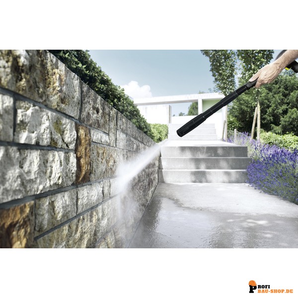 • Stufenlose Druckregulierung: Einfaches Drehen am Strahlrohr ermöglicht den Wechsel von Niederdruck für Reinigungsmittel bis zum Hochdruckstrahl.