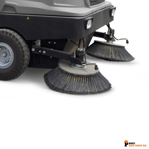 • Präzise Spritzwasserdüsen: Direkt an den Seitenbesen positioniert für eine optimale und gezielte Befeuchtung der Kehrfläche.