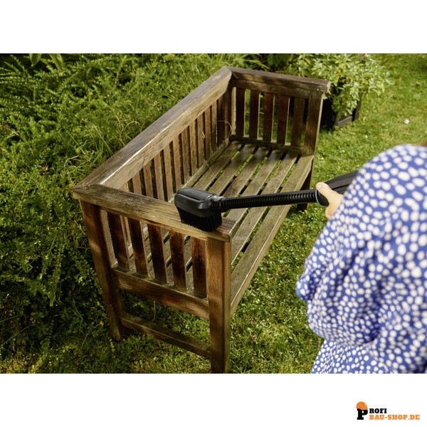 Der Kampf gegen hartnäckigen Schmutz, wie verklebte Pollenfilme auf Gartenmöbeln oder Dreckkrusten auf Blumenkübeln, erfordert oft mehr als nur einen Wasserstrahl. Hier setzt die Kärcher WB 24 Waschbürste an und liefert hervorragende Reinigungsergebnisse. Sie ist speziell dafür konzipiert, den integrierten Flachstrahl Ihrer Kärcher KHB- und OC 6-18 Modelle mit der kraftvollen mechanischen Reinigungswirkung ihrer extra langen Borsten zu ergänzen. Dank des in 90°-Schritten drehbaren Bürstenkopfs erreichen Sie jede Stelle, während der effiziente Wasserverbrauch den Akku schont und Ressourcen spart.