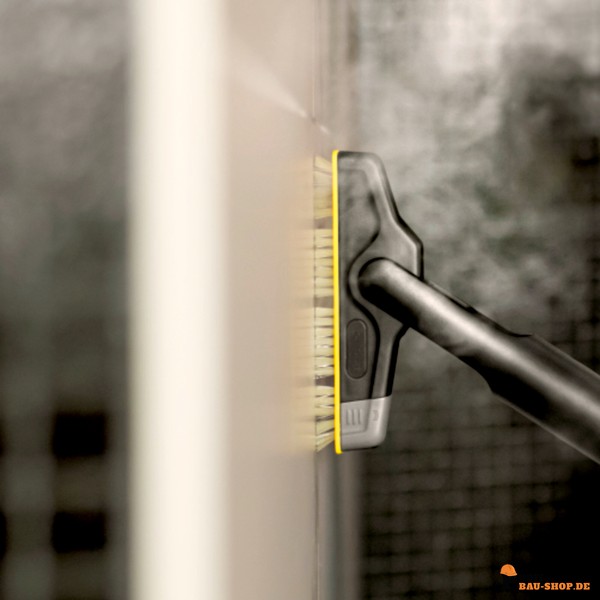Die Kärcher XXL Fugenbürste (Artikelnummer 2.863-334.0) ist das ideale Zubehör für die Dampfreinigung, das die bisher mühsame und zeitaufwendige Reinigung von Fliesenfugen aus Zement revolutioniert. Dank ihres flexiblen Gelenks und der optimierten Borstenanordnung in einer Reihe ermöglicht diese große Bürste eine mühelose und effiziente Fugenreinigung ohne den Einsatz chemischer Mittel. Sie lässt sich einfach auf Verlängerungsrohre aufstecken, was eine komfortable Anwendung im Stehen ermöglicht und somit Rücken und Gelenke schont. Der Dampf verteilt sich schnell und gleichmäßig über die Bürste, um selbst schwer erreichbare Stellen zu reinigen und Ihre Fugen im Handumdrehen wieder wie neu aussehen zu lassen.