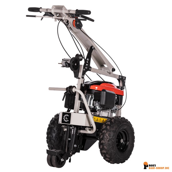 Die LUMAG Kabelverlegemaschine KVM-500 ist eine innovative Eigenentwicklung, die speziell dafür konzipiert wurde, die mühsame manuelle Kabelverlegung, beispielsweise für Mähroboter, zu revolutionieren. Angetrieben von einem robusten 3,5 kW 1-Zylinder-4-Takt-Benzinmotor, bietet die KVM-500 eine effiziente und zeitsparende Lösung für Garten- und Landschaftsbauer sowie ambitionierte Heimwerker. Dank ihres vielseitig verstellbaren Lenkers meistern Sie selbst schwer zugängliche Bereiche mit Leichtigkeit. Die präzise Verlegung wird durch einen integrierten Kabellängenzähler und ein um 180° schwenkbares Führungsrad – fixierbar bei Bedarf – gewährleistet, was für hohe Wendigkeit und exakte Ergebnisse sorgt. Ihre robuste Bauweise mit Ackerstollenrädern prädestiniert sie für anspruchsvolle Einsätze, während der ergonomisch anpassbare Lenker ein ermüdungsarmes Arbeiten über längere Zeiträume ermöglicht. Das abnehmbare Seitenteil erleichtert zudem das Bestücken der Kabeltrommel, wodurch die LUMAG KVM-500 eine schnelle, professionelle und komfortable Kabelverlegung garantiert.