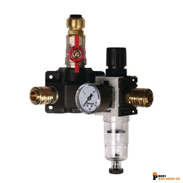 Bestellen Sie die aircraft 12 bar 15 mm Endverteilerdose mit zwei Einhandkupplungen, Absperrhahn und Filterdruckregler jetzt unkompliziert und bequem online bei Profi-Bau-Shop.de und lassen Sie sie sich direkt liefern!