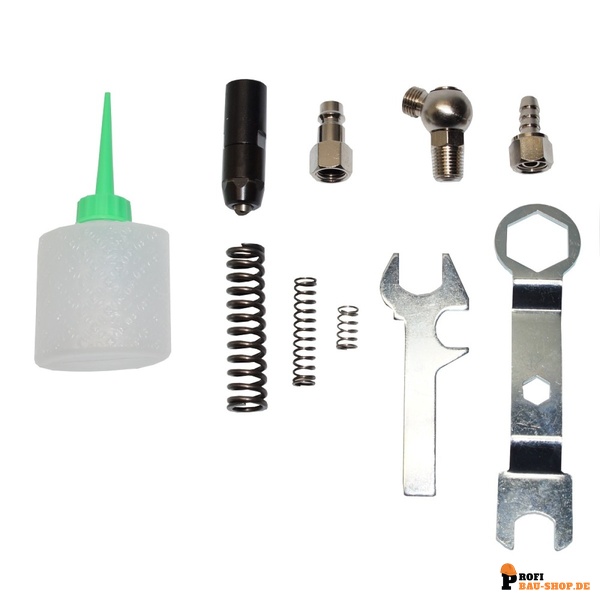 Ein besonderes Highlight ist der integrierte Sammelbehälter für abgerissene Nietdorne, der für einen sauberen Arbeitsplatz sorgt. Die Lieferung erfolgt in einem robusten Kunststoffkoffer, der das Gerät und das umfangreiche Zubehör sicher und ordentlich aufbewahrt und transportierbar macht.