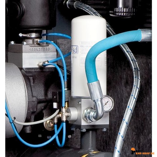 • Geringerer Aufwand für Druckluftaufbereitung: Der integrierte Nachkühler reduziert den Aufwand für Trocknung und Filtrierung der erzeugten Druckluft.