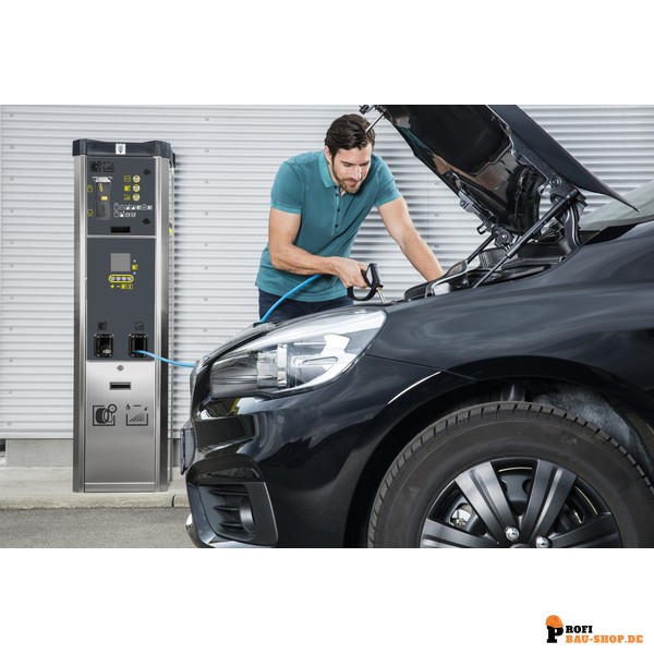 Das geeichte Kärcher AWT-C Fp Reifenfüllgerät bietet präzise Reifendruckregulierung bis 8 bar, einen integrierten, frostgeschützten Wasserspender und einen elektronischen Münzprüfer für flexiblen Kundenservice.