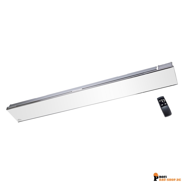 FRICO Relax Glass Dimmer IHRGD30WS65: Leistungsstarker Infrarot-Terrassenheizstrahler mit 3 kW und Fernbedienung. Dimmbar in 3 Stufen. Die Kombination aus weißer Keramikglasfront und silbernem Gehäuse ist dank IP65 ideal für große, elegante Außenbereiche.