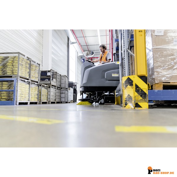 Die Kärcher Aufsitz-Scheuersaugmaschine B 260 R I Bp Pack+D100+DOSE wurde speziell für die extremen Anforderungen harter industrieller Umgebungen entwickelt. Ausgestattet mit Batterie, Ladegerät und einem 100-cm-Scheibenbürstenkopf, bietet sie eine herausragende Reinigungsleistung und ermöglicht dank einer Fahrgeschwindigkeit von bis zu 10 km/h, 260 Liter großen Tanks und 100 Zentimeter Arbeitsbreite hohe Flächenleistungen in kürzester Zeit. Für maximale Sicherheit überwacht ein Lenkwinkelsensor die Fahrgeschwindigkeit in Kurven und reduziert sie bei Bedarf automatisch. Das serienmäßige Reinigungsmittel-Dosiersystem DOSE, die Auto-Fill-Funktion und der überarbeitete Scheibenbürstenkopf aus Edelstahl mit Grobschmutzkorb garantieren zusammen mit den verschleißfreien Ec-Turbinen und dem optimierten Saugbalken erstklassige Reinigungsergebnisse und höchste Robustheit.