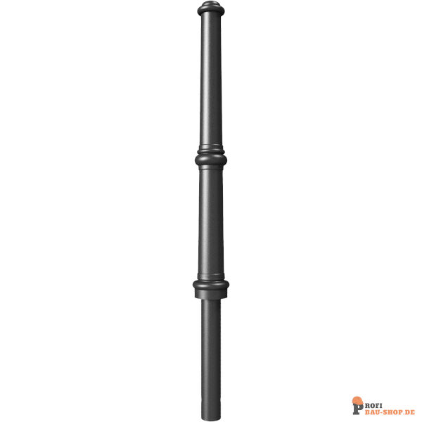 Alu-Stilpfosten, Aluminiumguss mit Stahlrohrkern, ca. 900 mm überflur, mattschwarz (RAL 9005 matt) beschichtet, ortsfest, zum Einbetonieren, mit Erdanker, Gesamtlänge ca. 1300 mm, ohne öse