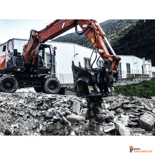 Der SIMEX CBE 20 füllt die Lücke für Bagger in der mittleren Gewichtsklasse von 10 bis 18 Tonnen. Er bietet eine optimale Balance aus Eigengewicht (1320 kg) und enormer Brechleistung. Dieser Rotor-Brecherlöffel ist darauf ausgelegt, das Volumen von Abbruchmaterialien direkt vor Ort zu reduzieren und wertvolle Recycling-Baustoffe zu erzeugen.