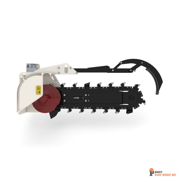 Die SIMEX CHD 120 B mit 150 mm Mix-Kette (Hacken & Zähne) ist die Allround-Lösung für Bagger von 8-15 Tonnen. Sie ermöglicht 1200 mm tiefe Gräben auch in verdichteten oder gemischten Böden.