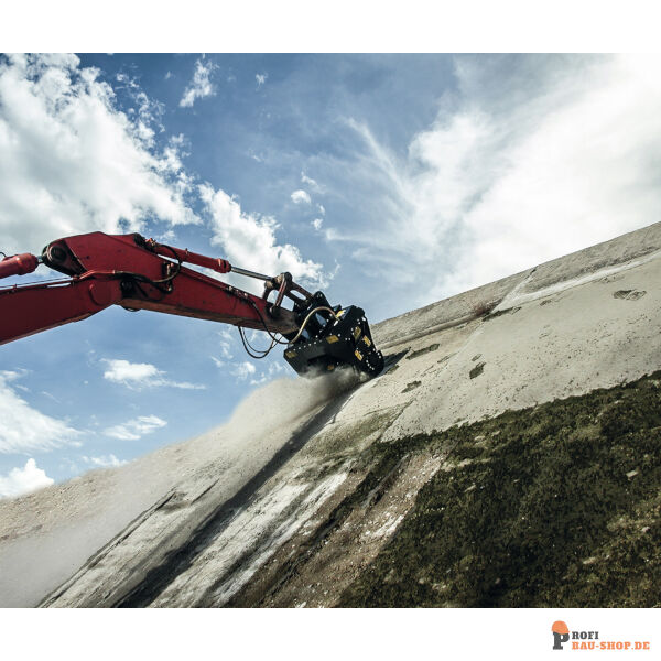Angetrieben wird die Frästrommel von zwei großvolumigen Radialkolbenmotoren im Direktantrieb. Diese Konfiguration gewährleistet, dass auch bei voller Arbeitsbreite und harten Materialien (Beton, Fels) stets genügend Drehmoment zur Verfügung steht. Die Führung erfolgt über zwei seitliche Stützräder, die die eingestellte Frästiefe mechanisch konstant halten und ein Eintauchen der Fräse verhindern.