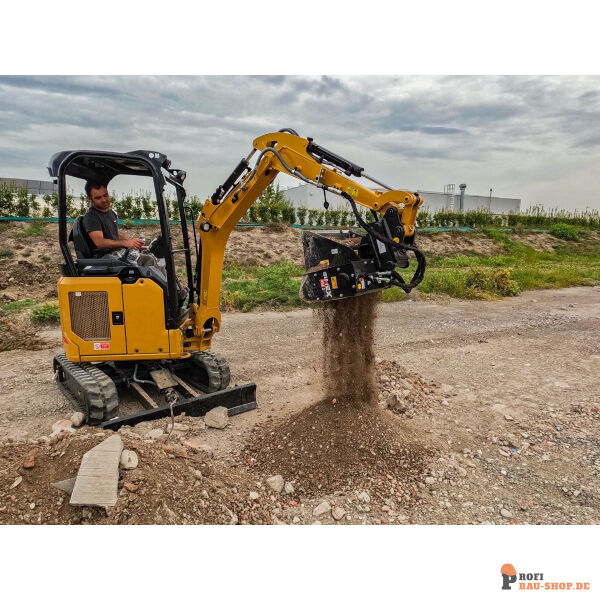 Der SIMEX VSE 3 ist ein leistungsstarker Sieblöffel für Bagger von 3 bis 5 Tonnen. Er eignet sich perfekt zum Trennen von Aushubmaterial und Bauschutt im Garten- und Landschaftsbau sowie auf kleineren Baustellen.