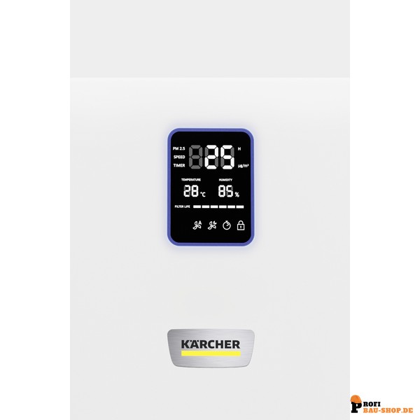 Ein übersichtliches Display liefert Ihnen jederzeit Informationen zur Luftqualität (PM-2,5-Partikel, Farbcode), Temperatur und relativen Luftfeuchtigkeit. Komfortfunktionen wie eine Timer-Funktion, Kindersicherung, Nachtmodus und der flüsterleise Betrieb machen den AF 30 besonders benutzerfreundlich. Mit einer beeindruckenden Filtereffizienz von 99,95 % bei 0,3-µm-Partikeln und einer Filterstandzeit von bis zu einem Jahr bietet der Kärcher AF 30 langanhaltende und zuverlässige Leistung für ein gesundes Raumklima.