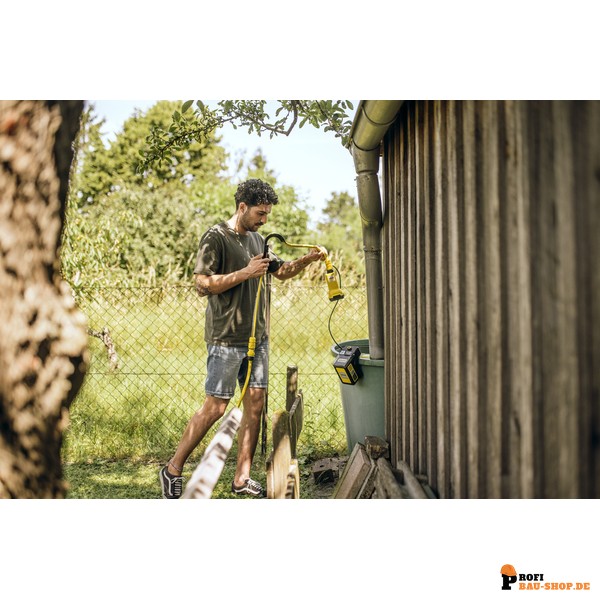 Die innovative Kärcher Akku-Fasspumpe BP 2.000-18 Barrel revolutioniert die Gartenbewässerung, indem sie Ihnen ermöglicht, wertvolles Regenwasser aus Ihrem Fass zu nutzen – selbst in Gärten ohne Stromanschluss. Dies spart nicht nur teures Trinkwasser, sondern schont auch Ihren Geldbeutel und fördert eine umweltfreundliche Bewässerung. Als perfekter Gießkannenersatz bietet diese Pumpe höchste Flexibilität und eine rückenschonende Bedienung dank der praktischen Fassrandbefestigung mit integriertem An-/Ausschalter und Akkuaufnahme. Das transparente Akkudeckel ermöglicht dabei jederzeit einen Blick auf das Real-Time-Akkudisplay, während die intelligente Schlauchführung einen konstanten Wasserfluss gewährleistet und ein Abknicken des Schlauches verhindert. Ihre geringe Größe erlaubt zudem den Einsatz in schmalen Fassöffnungen, wie sie bei IBC-Containern üblich sind, und der integrierte Vorfilter schützt die Pumpe zuverlässig vor Verunreinigungen, was ihre Lebensdauer und Funktionssicherheit erhöht.