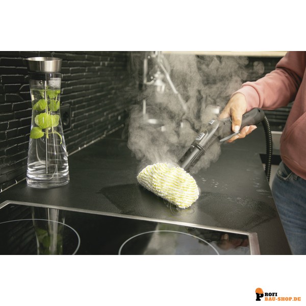• Anpassbare Dampfmenge: Die 2-stufige Dampfregulierung ermöglicht die individuelle Anpassung der Dampfintensität an den jeweiligen Verschmutzungsgrad und die Oberfläche.