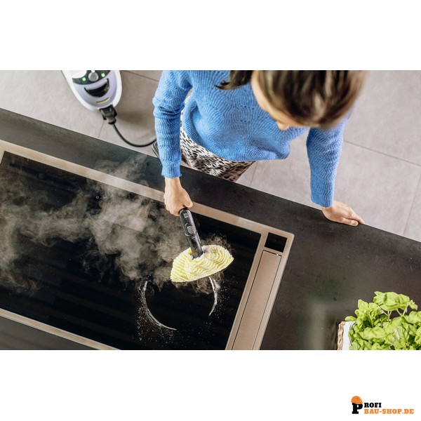 Der Kärcher Dampfreiniger SC 5EasyFixIron setzt neue Maßstäbe in der Haushaltsreinigung. Ausgestattet mit einem überragenden Dampfdruck von 4,2 Bar, avanciert er zum klassenstärksten Gerät seiner Kategorie und garantiert eine Tiefenreinigung, die bis zu 99,999 % der Viren¹⁾ und 99,99 % aller haushaltsüblichen Bakterien²⁾ auf Hartflächen eliminiert. Dank der innovativen VapoHydro-Funktion kann heißes Wasser zugeschaltet werden, um selbst hartnäckigsten Schmutz mühelos zu lösen und wegzuspülen. Das im Lieferumfang enthaltene Dampfdruck-Bügeleisen beschleunigt den Bügelvorgang um bis zu 50 Prozent, während die flexible EasyFix-Bodendüse mit Lamellentechnologie und Klettsystem eine komfortable und hygienische Reinigung verschiedenster Oberflächen ermöglicht.