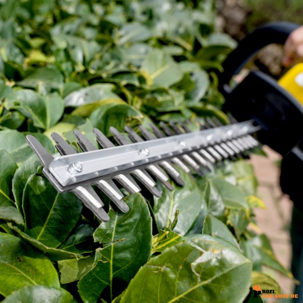 Die Kärcher Akku-Heckenschere HGE 18-45 Battery revolutioniert das Heckenschneiden durch ihr geringes Gewicht und ihre hohe Präzision. Ausgestattet mit einem diamantgeschliffenen Messer, liefert sie stets ein sauberes und exaktes Schnittergebnis, während das ergonomische Griffdesign eine komfortable und sichere Handhabung gewährleistet. Dank der Akku-Power können Sie auch längere Arbeiten mühelos erledigen, ohne dass Arme und Schultern ermüden. Eine integrierte 2-Hand-Sicherheitsschaltung bietet zusätzlichen Schutz vor unbeabsichtigtem Starten, sodass Sie stets sicher und effizient arbeiten können.