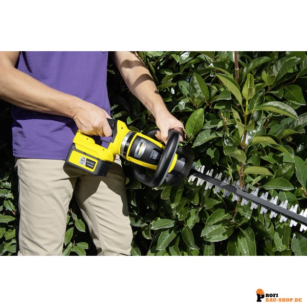 Die Kärcher HGE 36-60 Battery ist eine kraftvolle 36-V-Akku-Heckenschere mit 60 cm Schnittlänge. Sie überzeugt durch ihren um 180° drehbaren Handgriff, einen praktischen Schnittgutkehrer und eine 2-stufige Geschwindigkeitsregulierung für präzise und komfortable Heckenschnitte.