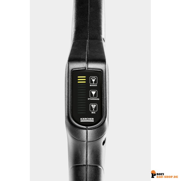 Hochdruckpistole mit Druckstufenanzeige: Verschiedene Strahlrohre ermöglichen 3 Druckstufen für die optimale Reinigung unterschiedlicher Oberflächen. Die Anzeige auf der Hochdruckpistole ermöglicht die einfache Kontrolle der gewählten Druckstufe.