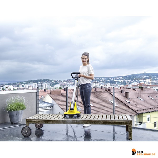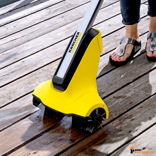 Der Kärcher PCL 4 ist ein elektrischer Terrassenreiniger, der mit rotierenden Bürstenwalzen und regulierbarer Wasserausbringung Holzterrassen und glatte Steinfliesen gründlich und schonend von Schmutz befreit.