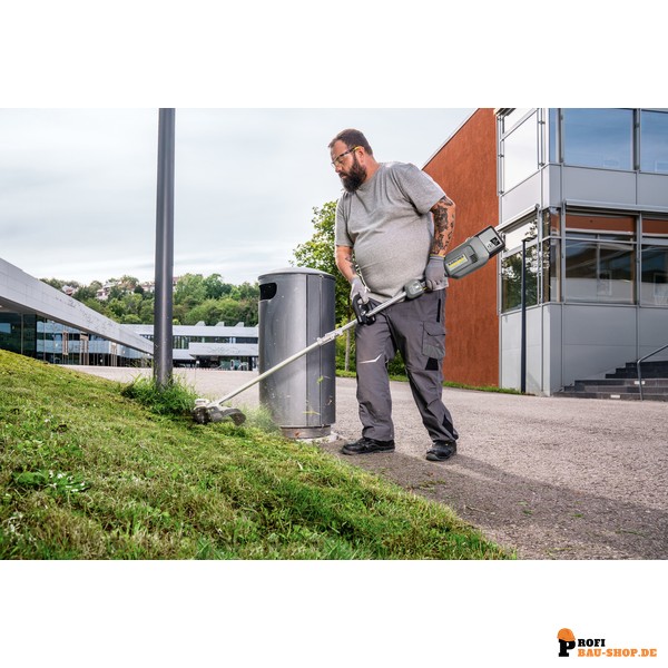 Ideal für schwer erreichbare Stellen, aber genauso gut auf der Fläche: Unser leistungsstarker Akku-Rasentrimmer Kärcher LT 380/36 Bp begeistert mit maximaler Flexibilität und komfortablem Handling. Schwer zugängliche Bereiche, wie unter Parkbänken, rund um Straßenschilder, Straßenleitpfosten oder auch an Bordsteinkanten, sind das Spezialgebiet dieses Geräts. Doch auch an Steigungen und auf größeren Flächen überzeugt dieses leichte Kraftpaket als geräuscharme und abgasfreie Alternative zu benzinbetriebenen Motorsensen. Der LT 380/36 Bp punktet zusätzlich mit einem ergonomisch verstellbaren Handgriff, optimaler Gewichtsverteilung und vibrationsarmem Betrieb, was ermüdungsfreie und lange Arbeitseinsätze ermöglicht.