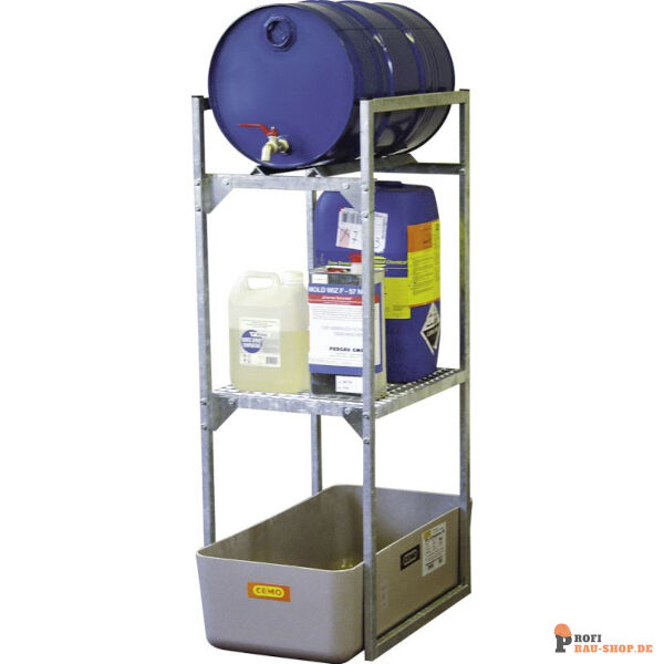 CEMO Fassregal Typ 120 mit GFK-Auffangwanne und Fass- und Gitterrostauflage für 1 x 60 l Fass und Kleingebinde