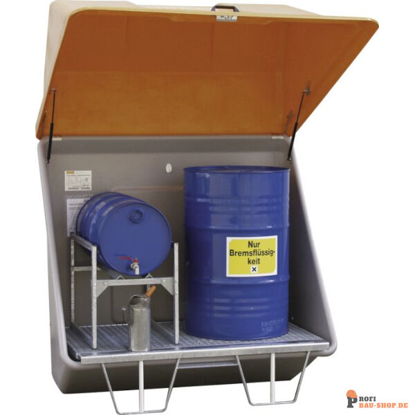 Schadstoff-Sammelstation aus GFK mit Gitterrostboden für Aufstellung im Freien (mit Haube), mit 200 l-Auffangraum