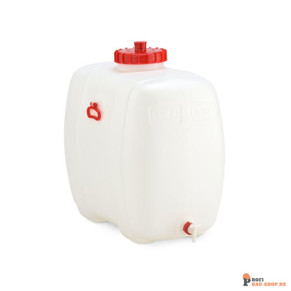 PE-Getränkefass - in PE lebensmittelecht - tiefer Auslauf mit Hahn DN 19 - mit Schraubdeckel Durchmesser 220 mm - mit 2 Handgriffen (zum Transport in leerem Zustand) - der Verschlussdeckel kann anstelle des Auslaufhahns montiert werden - optional Adapter mit AG 1" oder AG 1 ½" (siehe Zubehör)