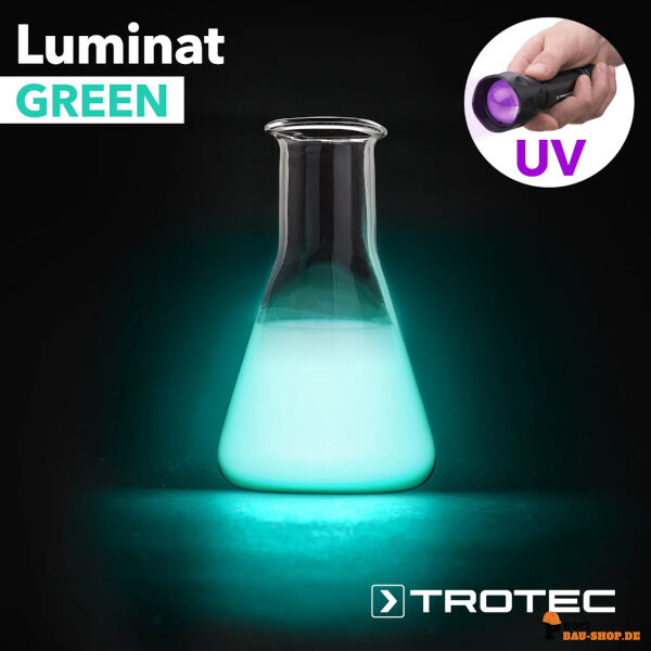 Erhältlich in vier leuchtstarken Farben (Green, Red, Blue, Purple), bietet Luminat Green maximale Flexibilität für unterschiedliche Umgebungsbedingungen. Wichtig: Luminat ist nicht als Lebensmittelfarbstoff geeignet! Kombinieren Sie es mit TROTEC UV-Handstrahlern wie der UV-Torchlight 16F für optimale Ergebnisse.