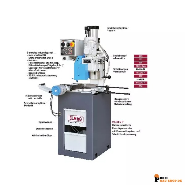 Merkmale ELMAG Metall-Kreissägemaschinen Metall-Kreissägemaschine VS 315 P