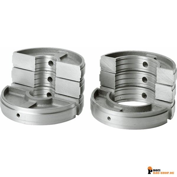 Der ROTHENBERGER Reduktions-Spanneinsatz (200 mm) ermöglicht die präzise und sichere Fixierung von Rohren in den Grundspannbacken der Kunststoffschweißmaschine P500B. Ein Satz aus 8 hochwertigen Stahlhalbschalen mit spezieller Kontur gewährleistet festen Sitz und einfache Handhabung.