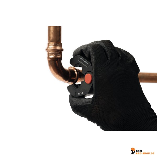 • Spezielle M-Kontur (22 mm): Optimal für systemkonformes Verpressen von Fittings an metallischen Rohrleitungssystemen, auch in komplexen Situationen.