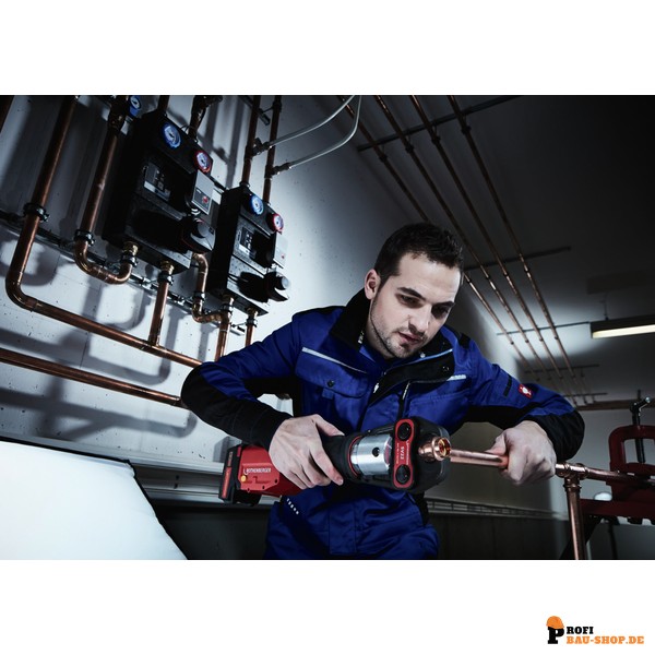 • Breites Anwendungsspektrum: Ideal zum Verpressen von Fittings aus Metall, Kunststoff- und Mehrschichtverbundsystemen (MSR) bis 110 mm.