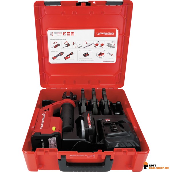 Bestellen Sie die ROTHENBERGER Pressmaschine Compact ROMAX COMPACT III Set RFZ16-20-25, 2Ah, EU, CAS jetzt unkompliziert und bequem online bei Profi-Bau-Shop.de und lassen Sie sie sich direkt liefern!