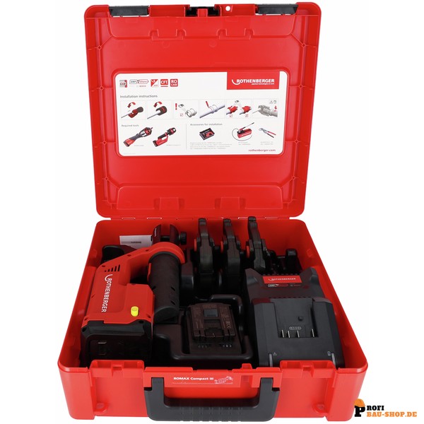 Bestellen Sie die ROTHENBERGER Pressmaschine Compact ROMAX COMPACT III Set M15-22-28, 2Ah, EU, AMP jetzt unkompliziert und bequem online bei Profi-Bau-Shop.de und lassen Sie sie sich direkt liefern!