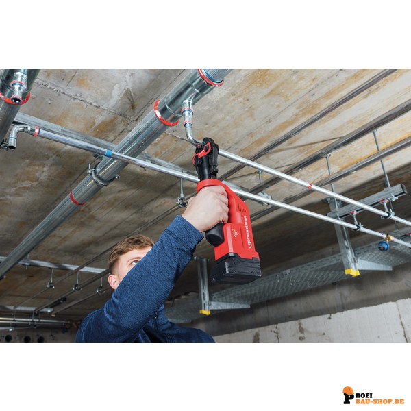 • Breites Anwendungsspektrum: Ideal zum systemkonformen Verpressen von Fittings bis 35 mm (Metall) und 40 mm (Kunststoff), auch in Zwangslagen.