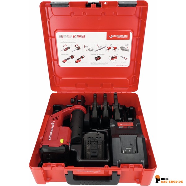Bestellen Sie die ROTHENBERGER Pressmaschine Compact ROMAX COMPACT III Set RFZ16-20-25, 2Ah, EU, AMP jetzt unkompliziert und bequem online bei Profi-Bau-Shop.de und lassen Sie sie sich direkt liefern!