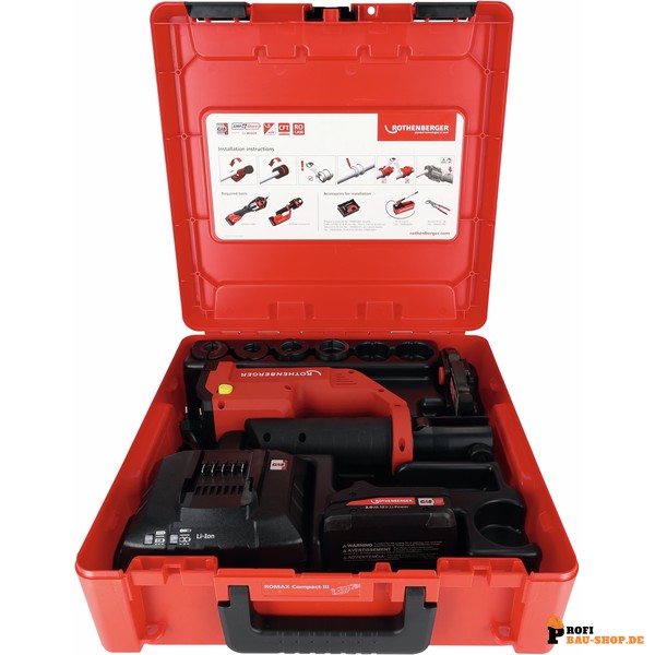 Bestellen Sie die ROTHENBERGER Pressmaschine Compact ROMAX COMPACT III WE-Set U16-20-25-32, 2Ah, EU, CAS jetzt unkompliziert und bequem online bei Profi-Bau-Shop.de und lassen Sie sie sich direkt liefern!