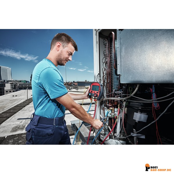 Die ROTHENBERGER ROCOOL 600 ist eine hochmoderne, digital aufrüstbare Monteurhilfe, die speziell für die anspruchsvolle Installation und Wartung von Klimaanlagen und Wärmepumpen entwickelt wurde. Dieses umfassende Set im robusten Transportkoffer beinhaltet das Grundgerät sowie zwei präzise Temperaturklemmen, die Ihnen sofort alle Vorteile einer digitalen Monteurhilfe eröffnen. Profitieren Sie von der automatischen Berechnung der Überhitzung und der Kompatibilität mit einer beeindruckenden Auswahl von über 80 verschiedenen Kältemitteln, was Ihnen maximale Flexibilität im Arbeitsalltag garantiert.