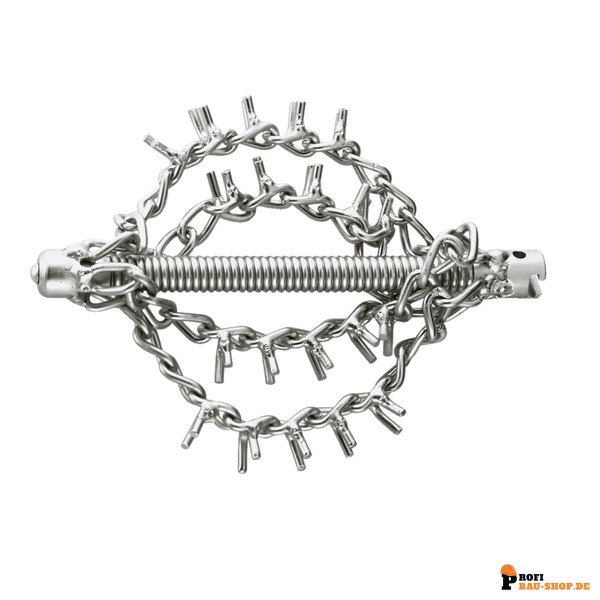 Der ROTHENBERGER Kettenschleuderkopf SP mit 4 Ketten, 22mm Kupplung und 60mm Durchmesser ist ein hartmetallbestücktes Spezialwerkzeug für die Beseitigung härtester Verstopfungen wie Zement oder Urinstein in Rohren von 75-130 mm.